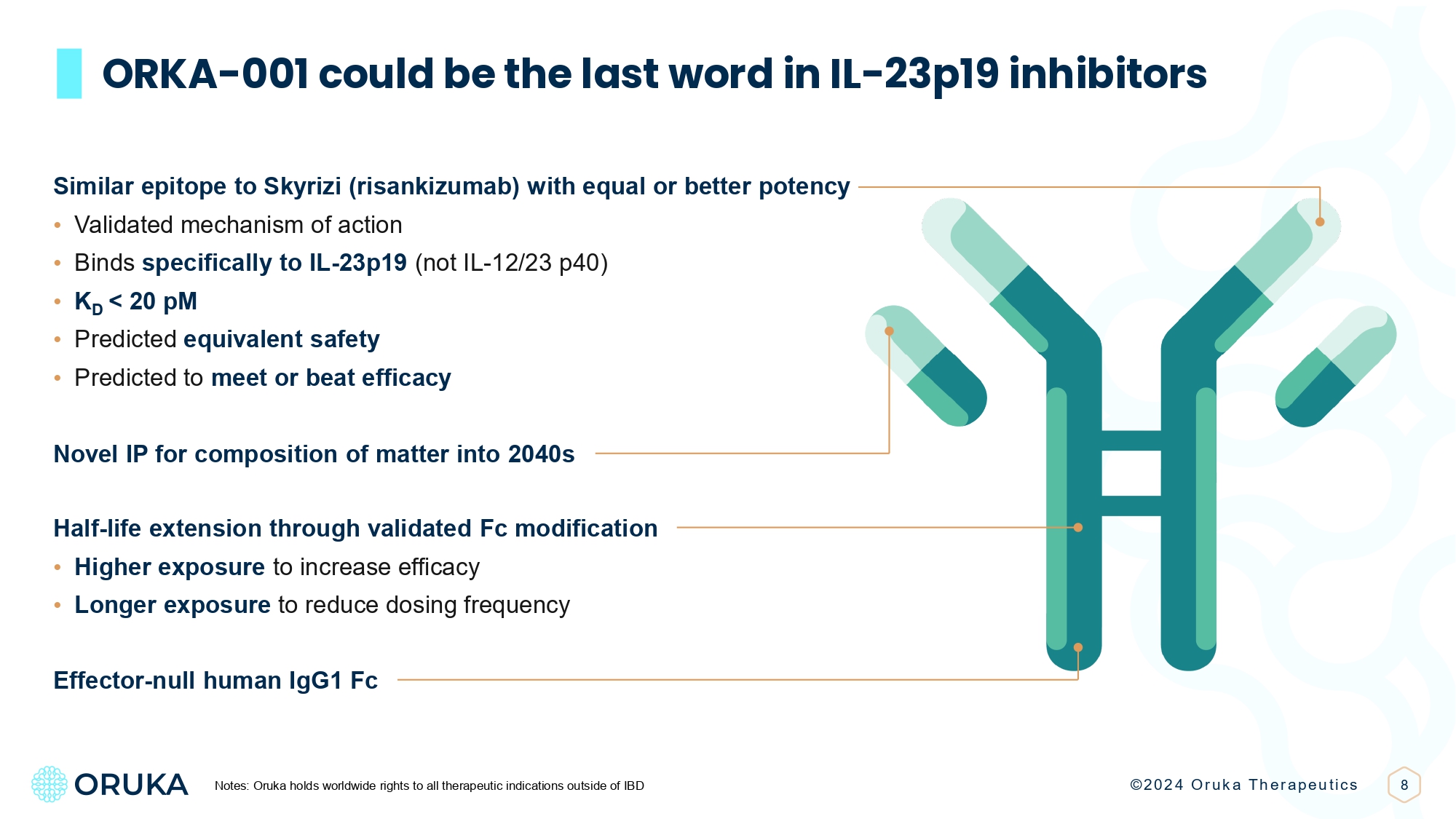 ©2024 Oruka Therapeutics 6 ORKA - 001: potentially best - in - class anti - IL - 23p19