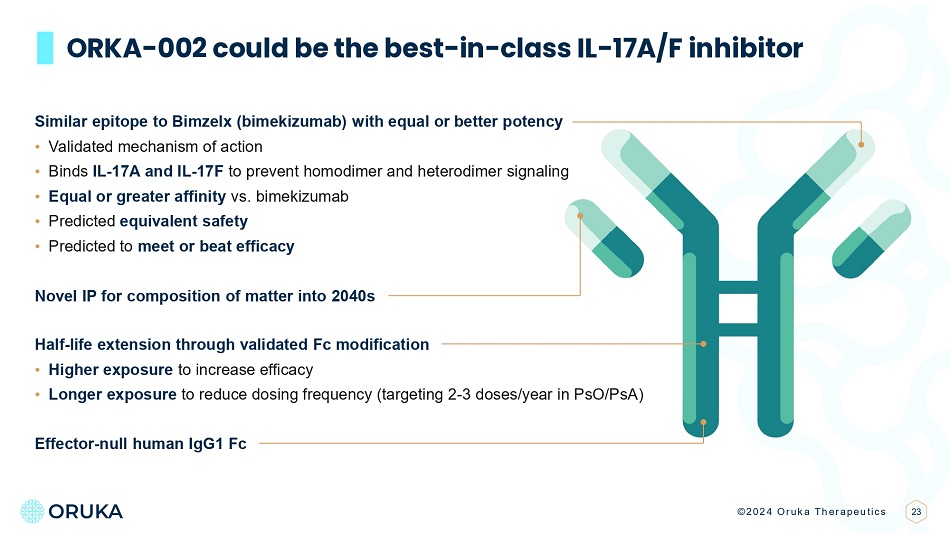 ©2024 Oruka Therapeutics 20 ORKA - 002: potentially best - in - class anti - IL - 17A/F